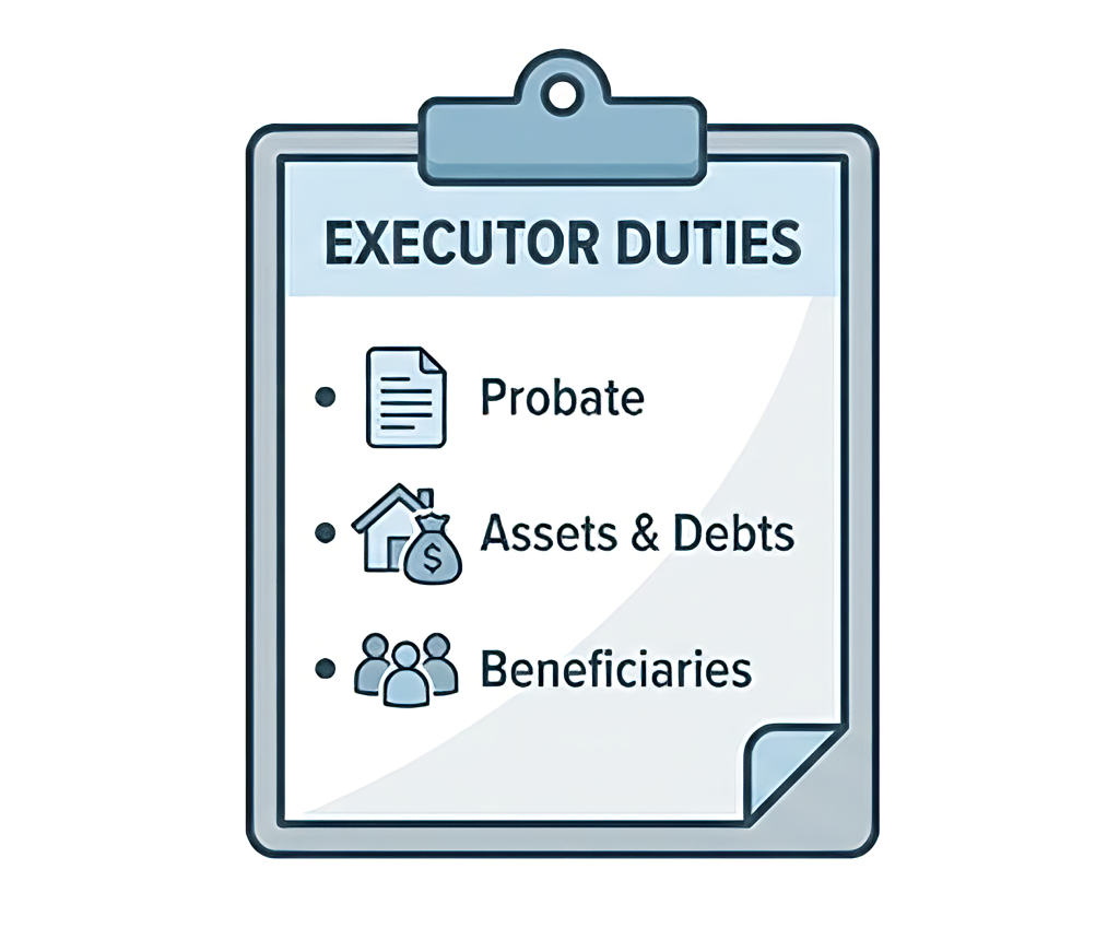 An executor settles a person’s estate after death. This role involves real legal responsibilities, not just a title.